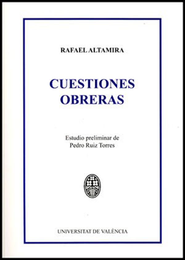 Desde principios del siglo XX y hasta poco antes del estallido de la Gran Guerra en junio de 1914, Rafael Altamira redactó numerosos escritos de temática «obrera», una buena muestra de los cuales, debidamente ordenados y clasificados, recopiló en el libro titulado Cuestiones obreras. En conjunto, los escritos de Altamira recibían la denominación de «cuestiones obreras». Al obrero como tal y como hombre no sólo le importaban cosas relativas a las relaciones entre el capital y el trabajo. Así, a esas otras cuestiones, en plural, que no son menos sociales que las económicas, nos dice Altamira, se refiere el presente libro, que abarca un amplio abanico de temas relacionados con la difusión popular de la cultura y los enfoques éticos y jurídicos del denominado «problema obrero».